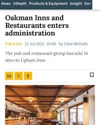 Oakman Inns, a pub chain with over 30 venues across the country, went under this week, that’s hundreds of jobs, gone overnight and they won’t be the last. The whispers in the industry are turning into roars. Big names are wobbling. Independents are on the edge, many are already finished, they just haven’t told their staff yet.